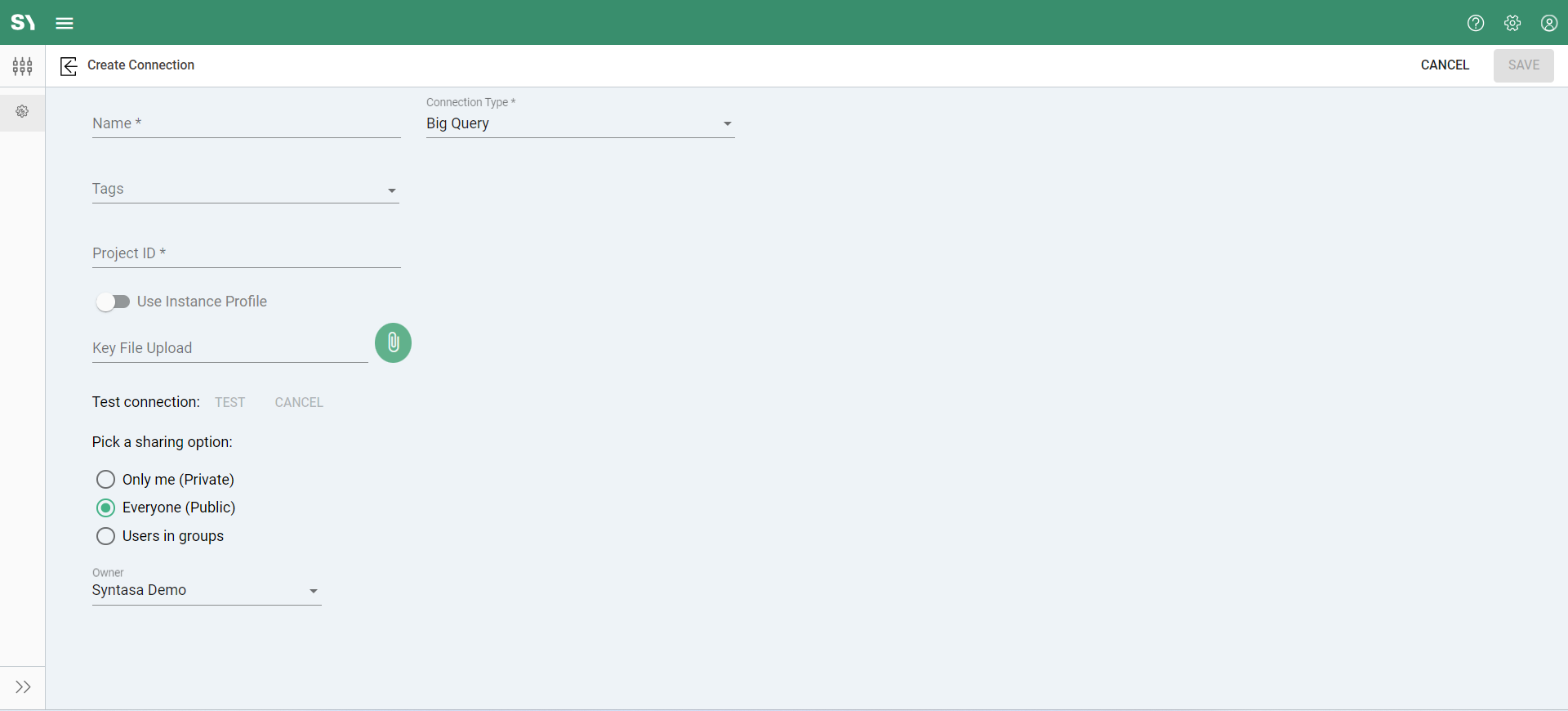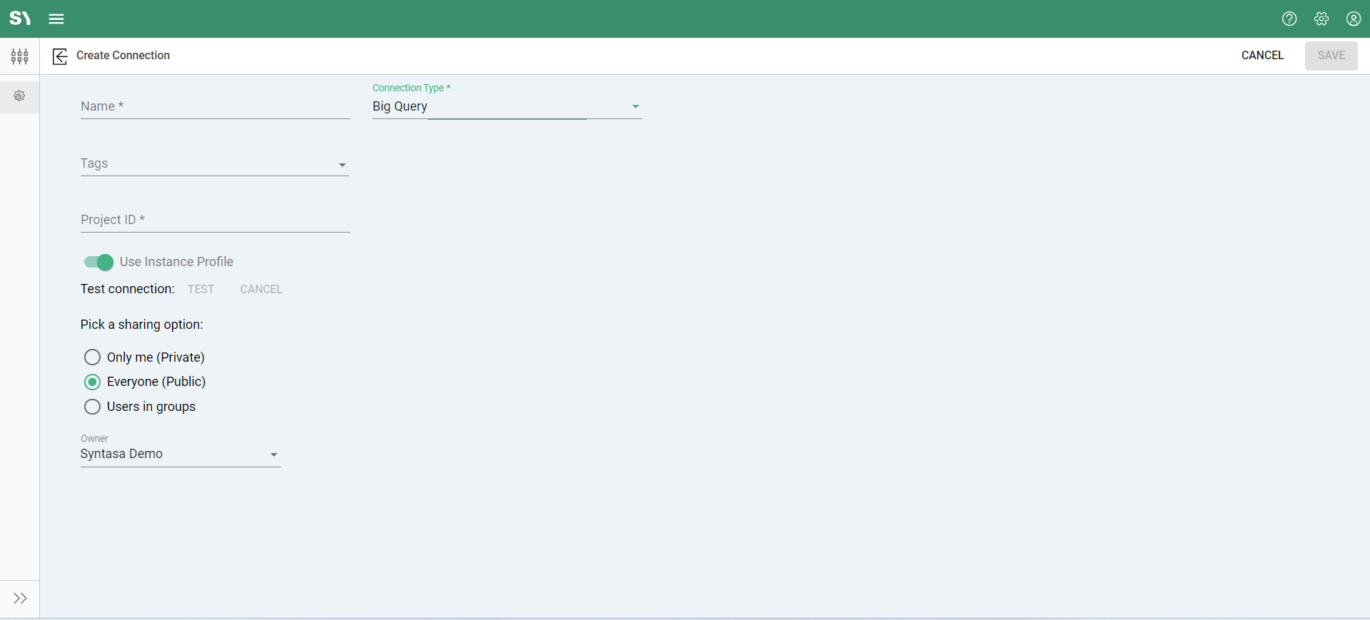 Google's cloud warehouse solution provides for very fast querying. Syntasa provides a BQ Connection to connect directly to BigQuery.