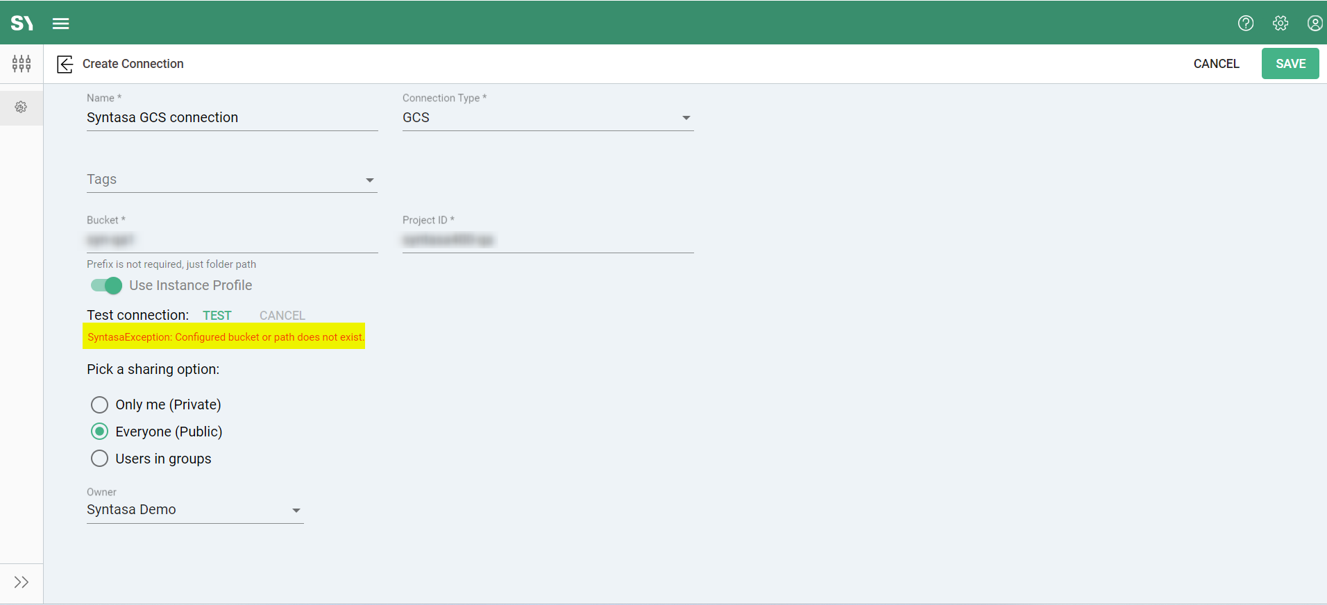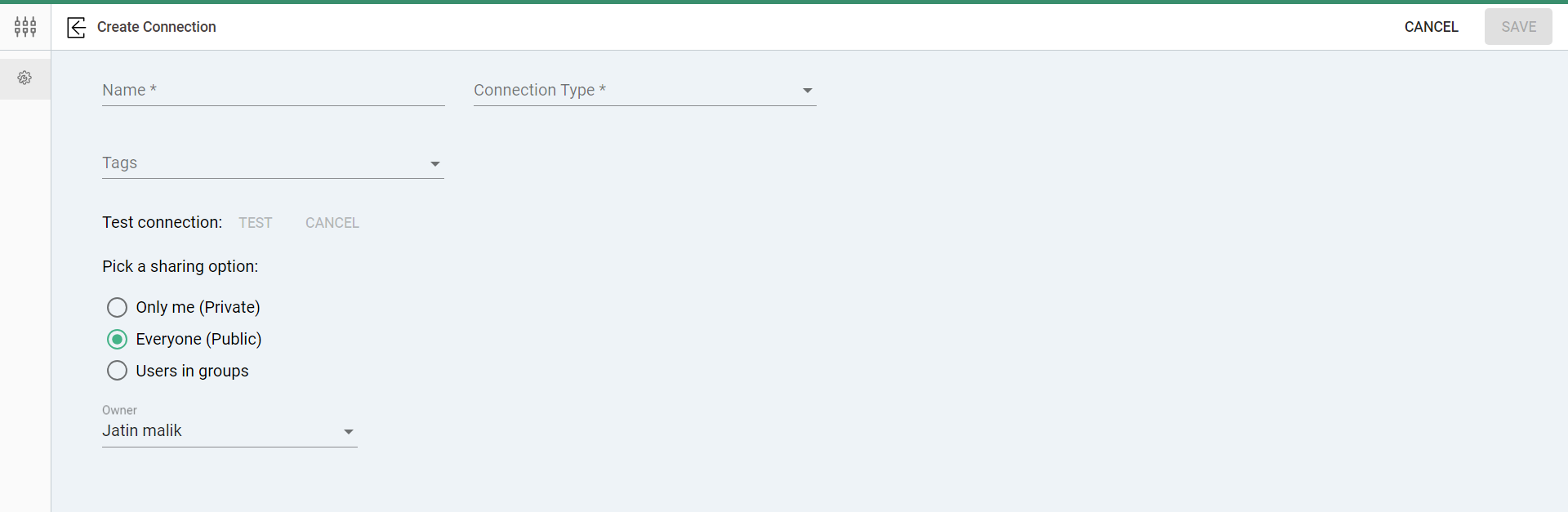 - Private: If you select Private, only you (the owner) can access the Connection. This means nobody else, except for System Admins, can see or use it. System Admins have access to all connections, regardless of their sharing settings.