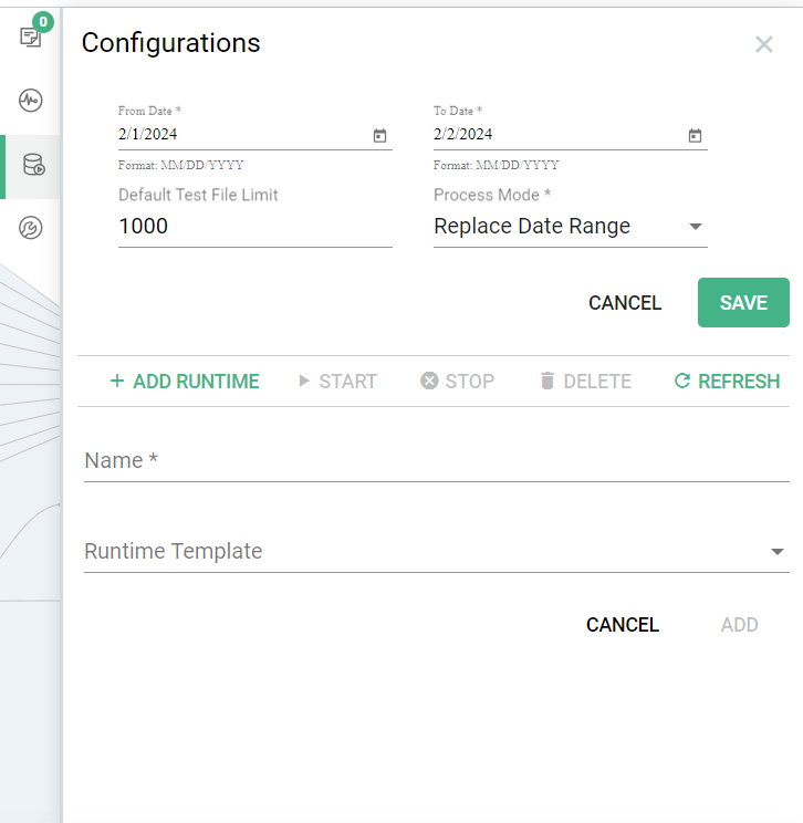 • Date Range: Specify the execution date range for processing data.
