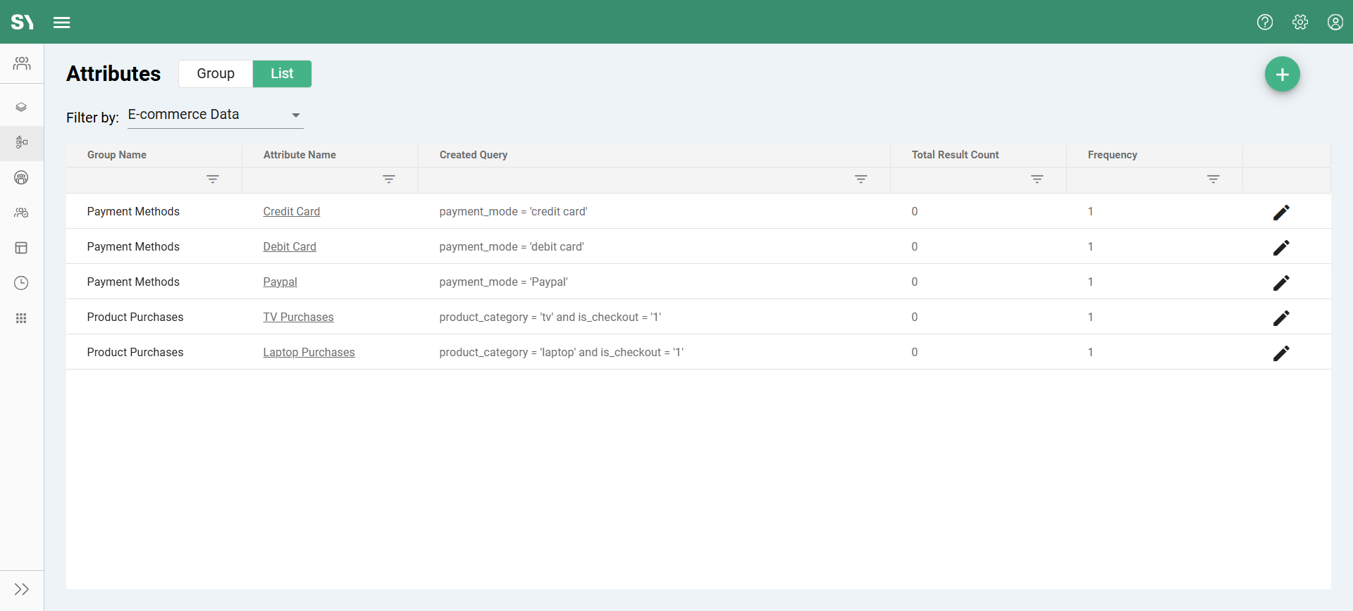 • Edit Icon: Provides quick access to the edit page, where users can modify attribute groups or queries.