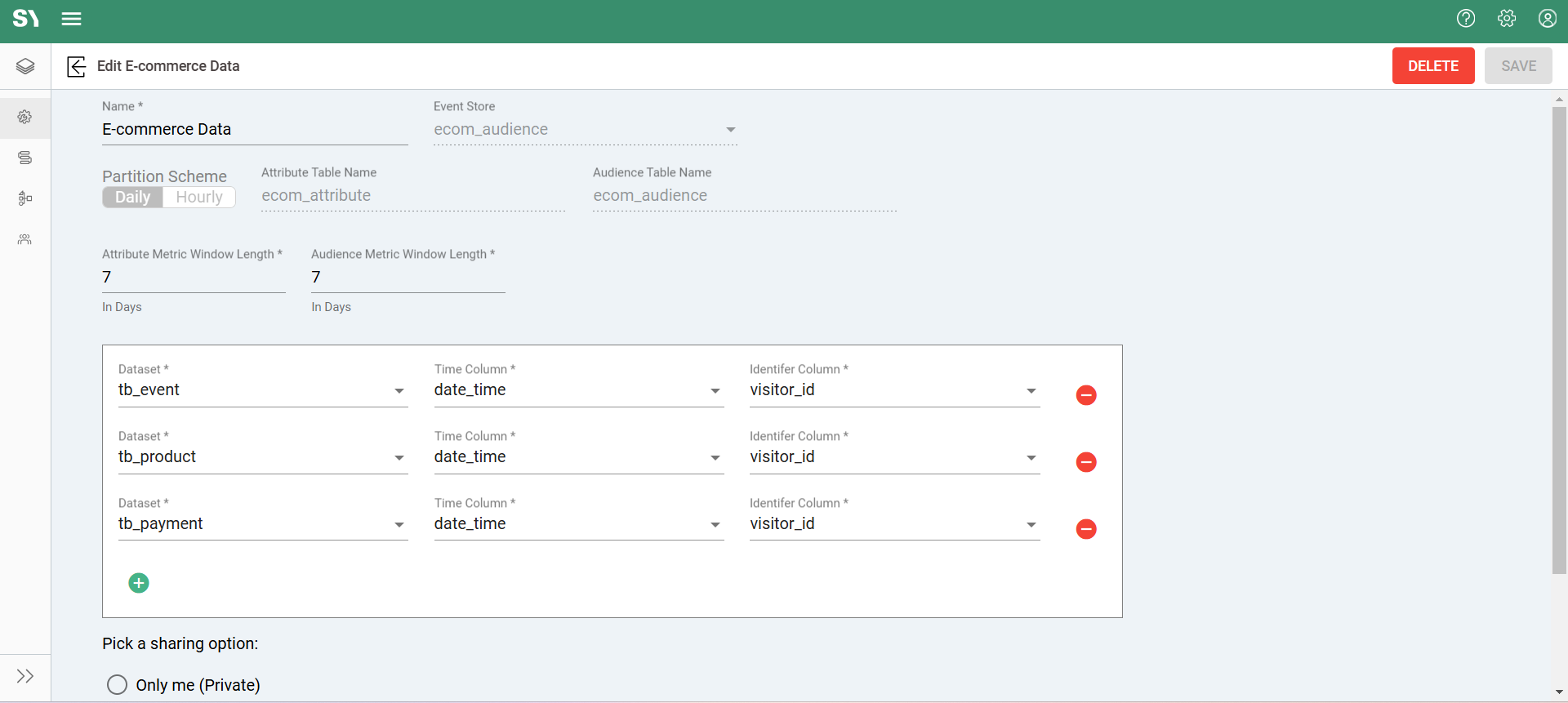 - Dataset Screen in the Event Store: Provides additional details such as schema information, usage, and more.
