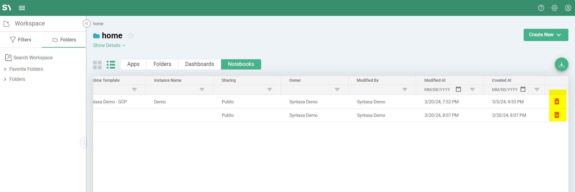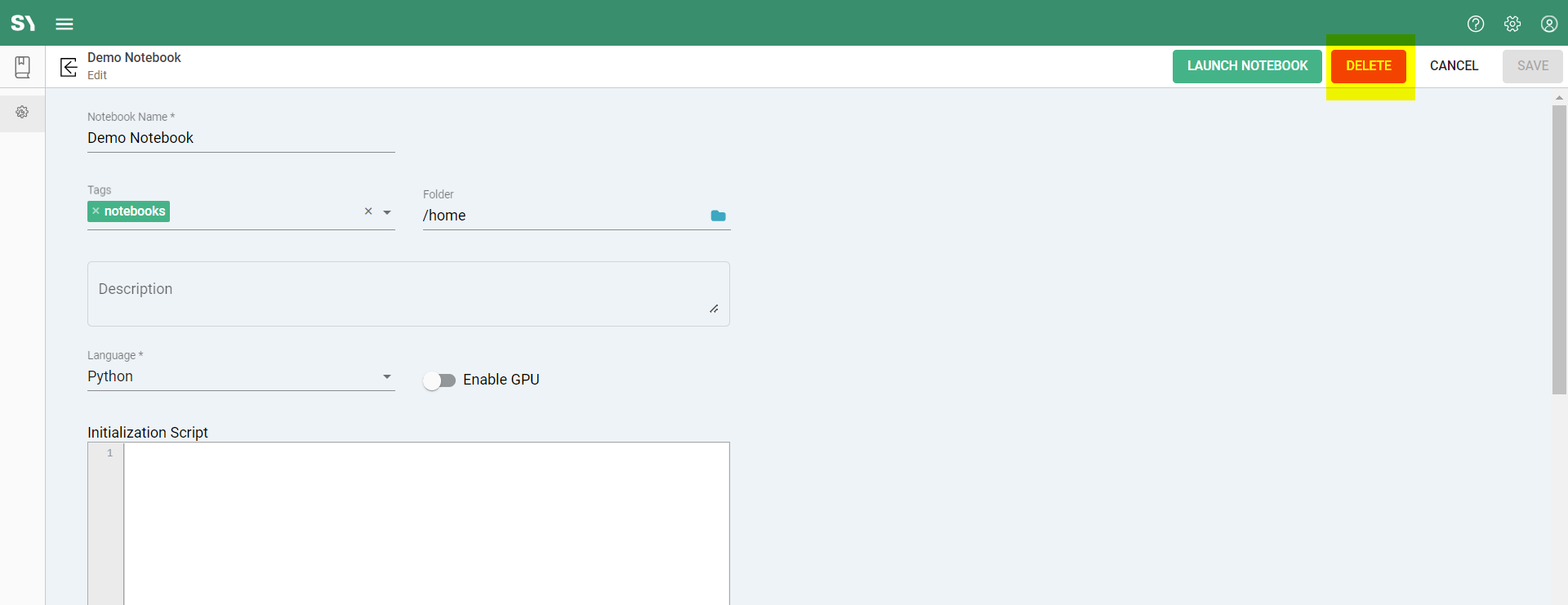 Deleting a Notebook
