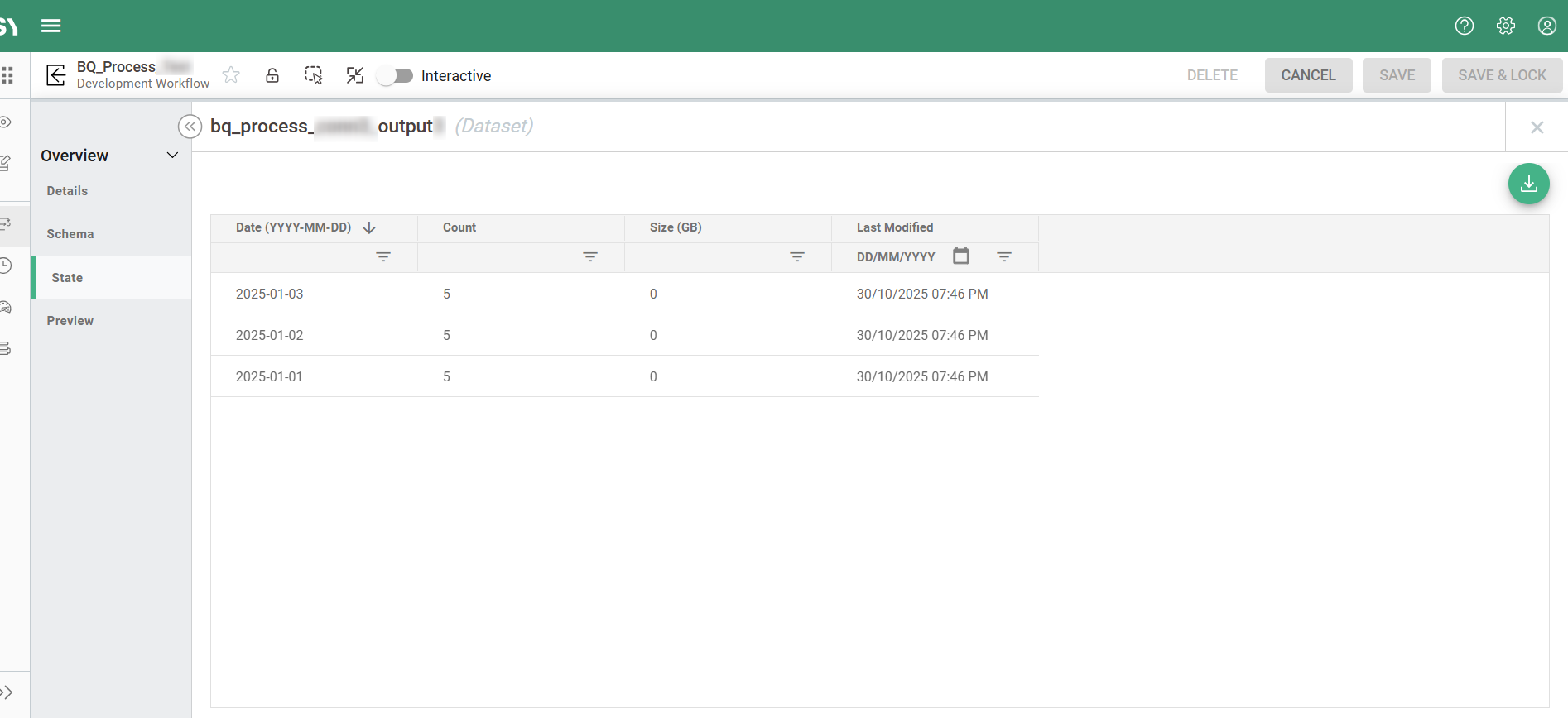 After the BQ Process has executed successfully, you can verify the results by reviewing both the partition statistics and the data preview.